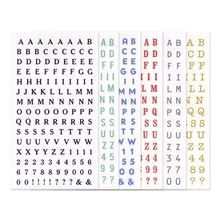 • balenie obsahuje 6 sád (6 hárkov) písmeniek abecedy a číslic, každá sada má iný typ písma a inú farbu