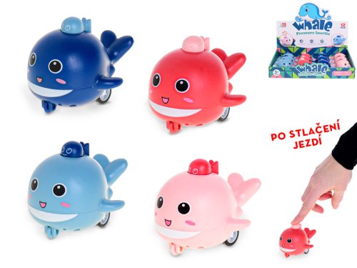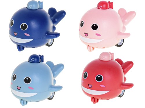 Delfín 8 cm po stlačení jazdiaci - mix farieb (ružová, červená, svetlo modrá, tmavo modrá)