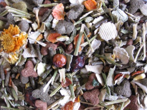 Zloženie: produkty rastlinného pôvodu (21 % lucerna, 6 % seno z bojinku lekárskeho, 3,5 % lucernová slama, 0,6 % bylinky (petržlen, skorocel, žihľava, púpava, echinacea, harmanček, kurkuma, oregano), zelenina (11,8 % sušená červená repa, 1 % sušený pastinák), obilniny, ovocie (2 % šípky), semená (2 % trávne semeno), minerály, oleje a tuky.