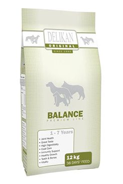 Kompletné prémiové krmivo pre dospelé psy všetkých plemien. Krmivo obsahuje sušené hydinové mäso, ktoré je jedinečným zdrojom obsahu bielkovín. Obsah bielkovín a tukov je prispôsobený potrebám psov s normálnou aktivitou. DELIKAN ORIGINAL BALANCE výborne pokrýva všetky potreby psa, preto nie je nutné k nemu pridávať akékoľvek doplnky. Bez sóje, farbív a chemických konzervantov.