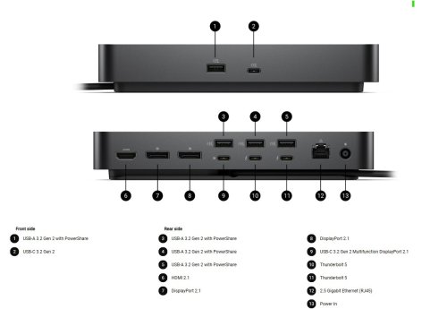 Technické parametre Technológia pripojenia: Drôtové Podporované zariadenie: Notebook Dĺžka kábla: 83 cm Funkcia: Priechodné napájanie, LED indikátor napájania Počet podporovaných displejov: 4 Prenos výkonu: 300W (systémy Dell), 240W (systémy iné ako Dell) Technológia Ethernet: 2,5 Gigabit Ethernet Maximálny výkon zdroja napájania: 33 Typ slotu zabezpečenia: Zabezpečený slot Kensington, Bezpečnostná štrbina Noble Wedge