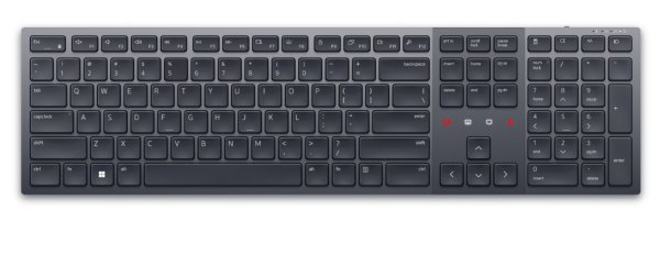 Štýlová plnohodnotná bezdrôtová klávesnica Dell podporuje pripojenie až k trom zariadeniam v jeden moment. Napájanie zaisťuje integrovaná batéria , ktorá sa dobíja pomocou priloženého USB-C kábla a zaručí výdrž až 20 dní . Pripojenie je realizované bezdrôtovo cez Bluetooth či miniatúrny USB prijímač a technológiu 2,4 GHz .