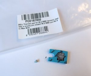 Teplovodivá podložka pre vloženie M.2 SSD disku do počítača Dell Pro Max Slim. Skrutky sú súčasťou balenia.