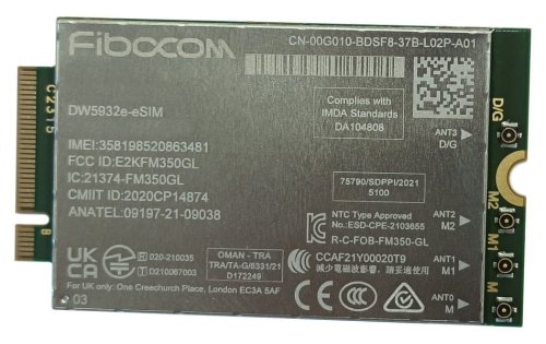 Bezdrôtový komunikačný modul pracujúci v pásmach NR FR1 (Sub6) FDD/TDD, LTE FDD/TDD, WCDMA a HSPA+ . Podporuje aj GPS, GLONASS, Beidou a Galileo. S rýchlosťou downlinku až 4,1 Gb/sa rýchlosťou uplinku až 2,2 Gb/sv pásme 5G zvyšuje modul spoľahlivosť a dostupnosť siete vášho počítača. Modul podporuje eSIM a klasickú SIM kartu cez externý slot (v notebooku).