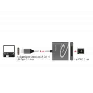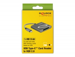 Čítačka kariet od Delocku môže byť použitá na čítanie a zápis na XQD pamäťovej karty. Čítačka kariet môže byť pripojená k PC alebo notebooku cez rozhranie USB Type-C™.