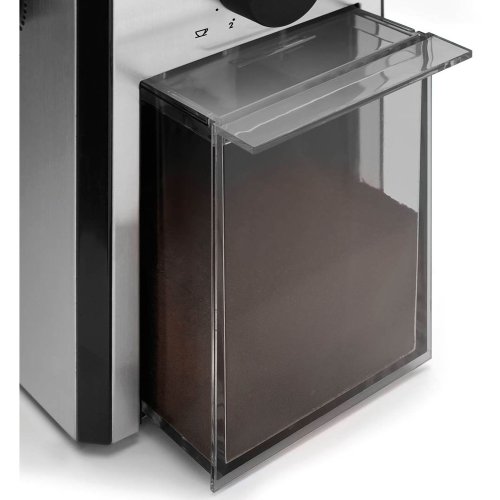 Vyberateľný, transparentná nádobka na pomletú kávu.