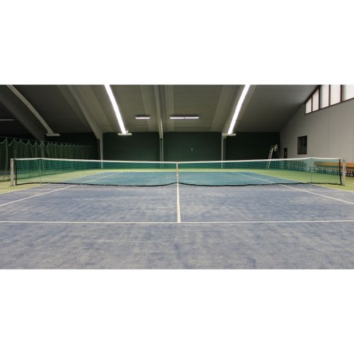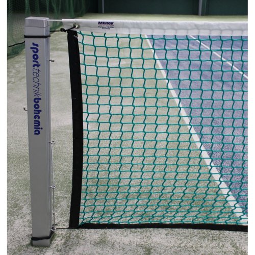 Tenisové siete radu Merco sú vyrobené od renomovaného európskeho výrobcu v takej kvalite, aby spĺňali požiadavky normy EN 1510. Tenisová bezuzlová sieť Merco Deluxe TN50G je vhodná pre tenisové kluby a pre hru na všetkých výkonnostných úrovniach. Sieť je vyrobená z vysoko pevného, bezuzlového polypropylénu, ktorý je odolný voči UV a poveternostným vplyvom. Vďaka tomu je sieť vhodná na použitie v hale aj na vonkajších kurtoch. Rozmery siete sú 12,8 x 1,07 m, veľkosť oka 35 mm a hrúbka 5 mm. Horná biela PES páska pridáva sieti dlhú životnosť. Sieť sa napína pomocou oceľového lanka, ktoré je možné jednoducho skrátiť. Parametre: - odolný PP materiál - rozmery: 12,8 x 1,07 m - hrúbka: 5 mm - veľkosť oka: 35 mm - horná biela PES páska - PVC páska po celom obvode - oceľové lanko, ktoré je možné skrátiť, dĺžka 14 m - pre indoor aj outdoor použitie - pre všetky výkonnostné úrovne