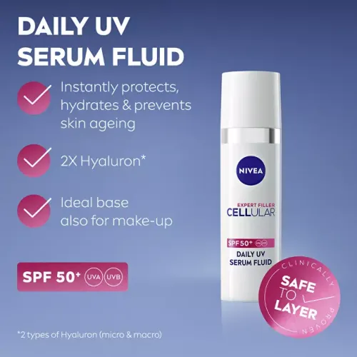 Denné UV sérum s SPF 50+, ktoré chráni pleť pred UV žiarením a zároveň jej poskytuje intenzívnu hydratáciu. Obsahuje dva typy kyseliny hyalurónovej a silný prírodný antioxidant z koreňa čínskeho sladkého drievka, Licochalcon A, ktorý bojuje proti oxidačnému stresu. Sérum spevňuje pleť, redukuje vrásky a pomáha predchádzať ich vzniku. Viditeľné výsledky sú zrejmé už po týždni pravidelného používania.