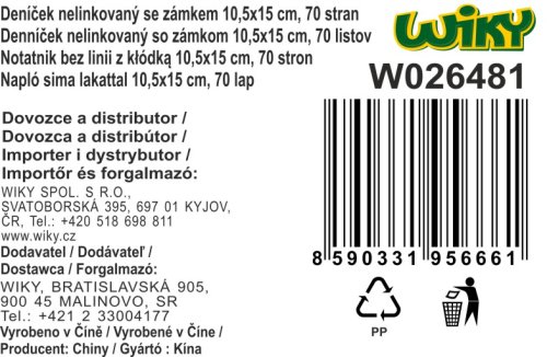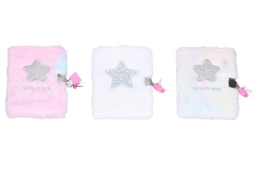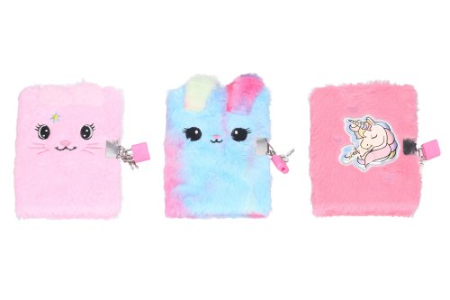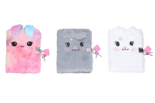 Denníček so zámkom o veľkosti 10,5x15 cm Plyš. 70 nelinkovaných strán. mix motívov.