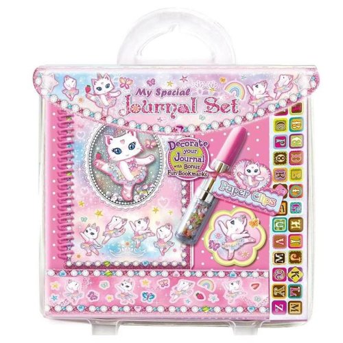 Denník s doplnkami - mačka, obsah: Denník, štvorfarebné pero, záložky a rôzne druhy samolepiek