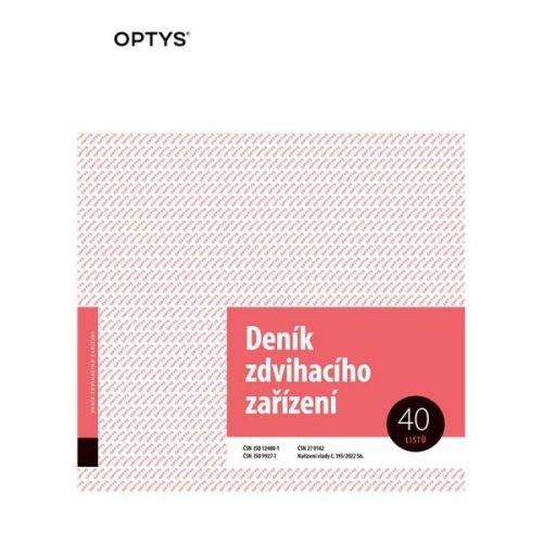 Denník zdvíhacieho zariadenia Pre evidenciu prevádzky, závad, opráv, čistenia a kontrol zdvíhacích zariadení Neprepisovací Nečíslovaný Formát A4 (na výšku) Obsahuje 40 listov Zošitová lepená väzba Spĺňa normy: …