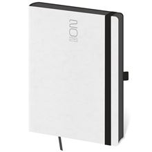 Na nerozoznanie od skutočnej kože, navyše doplnený gumičkou cez chrbát a orieškou bloku v rovnakej farbe. Ďalšími doplnkami je papierové vrecko na vnútornej strane zadných dosiek a pútko na ceruzku.