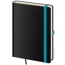 Diár je vyrobený zo zaujímavej matnej koženky s nepravidelnou štruktúrou, navyše je doplnený o gumičku na uzavretie v kontrastnej farbe.