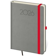Diár je vyrobený zo zaujímavej matnej koženky s nepravidelnou štruktúrou, navyše je doplnený o gumičku na uzavretie v kontrastnej farbe.