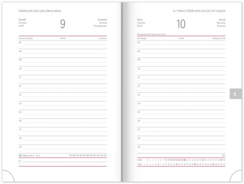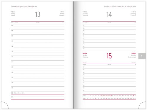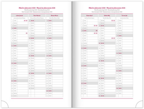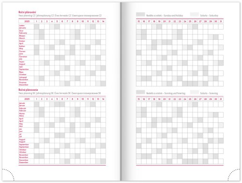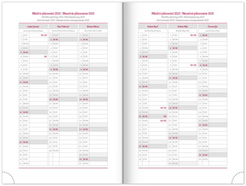 Plánovací denný diár Balacron 2025 formátu B6 v striebornom prevedení, doplnený o strieborný letopočet. Povrch diára si získal obľubu vďaka kvalitnému vrchnému materiálu, ktorý je extrémne odolný voči vonkajšiemu poškodeniu. Denný rozvrh s česko-slovenským kalendáriom a doplnkovou angličtinou, nemčinou, maďarčinou a ruštinou.