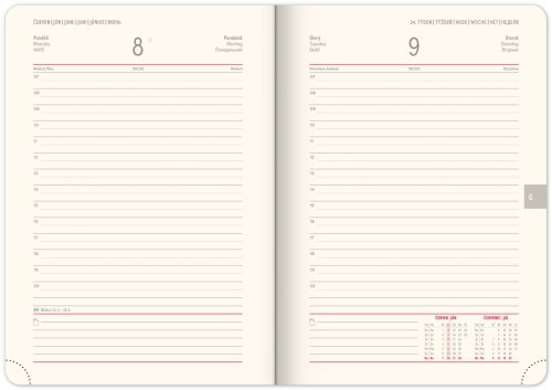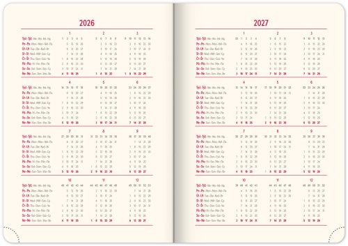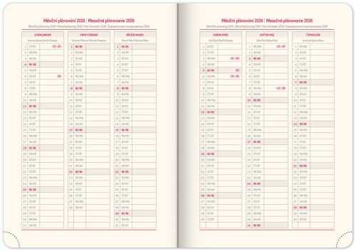 Denný diár Twill 2026 v čierno-zlatej farbe. Dva povrchy spojené efektným lepením – jednofarebný materiál je doplnený metalickým povrchom s razbou letopočtu. Diár má zaguľatené rohy, pútko na ceruzku a elastickú gumičku. Denný rozvrh s česko-slovenským kalendáriom a doplnkovou angličtinou, nemčinou, maďarčinou a ruštinou.