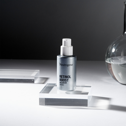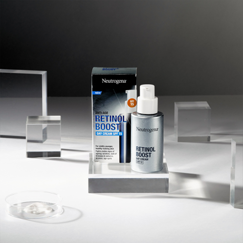 Denný anti-age krém SPF 15 proti starnutiu pleti s obsahom čistého retinolu a kyseliny hyalurónovej zjemňuje vrásky a znižuje výskyt jemných liniek na tvári. Redukuje pigmentové škvrny, vyhladzuje textúru pleti a zjednocuje jej tón. Pomáha pleť hydratovať a vyplniť ju. Vďaka ochrannému faktoru pleť chráni pred predčasným starnutím, spôsobeným slnečným žiarením.** Dermatologicky potvrdený účinok u 100% testujúcich ch.*(* Vedecké posúdenie dermatológmi, 38 testujúcich, používanie 1x denne.) Výsledky testovania:→ *vedecké posúdenie dermatológmi, 38 testujúcich, používanie 1× denne 100% testujúcich bol potvrdený viditeľný efekt už po 1 týždni používania: za 1 týždeň vyhladzuje textúru pleti o 28%, zjednocuje tón pletiza 4 týždne zjemňuje vrásky, znižuje výskyt jemných liniek za 8 týždňov redukuje pigmentové %