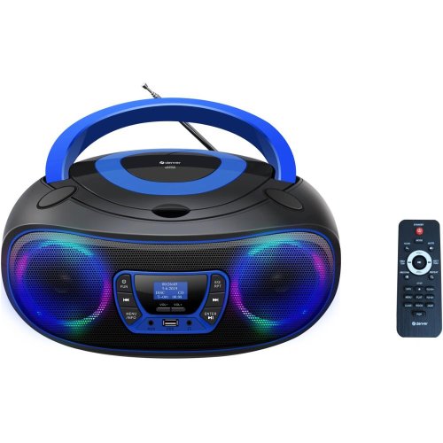DAB+/FM tuner LCD displej LED osvetlenie okolo reproduktorov Bluetooth 5.0 CD prehrávač USB vstup - podpora MP3 AUX vstup 3,5 mm