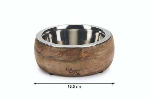 Váš pes vie, že jedlo chutí lepšie z misky Mandira od firmy Lotte. Vnútorná nerezová časť je ľahko vyberateľná a je možné umývať ju v umývačke riadu. Táto drevená miska vyniká prírodným vzhľadom, a preto sa hodí do každého interiéru. Rozmer: priemer 16.5 cm x 7 cm - 650 ml