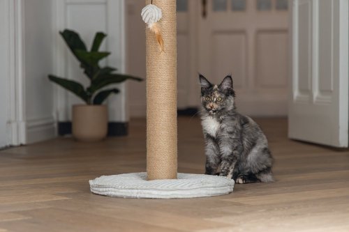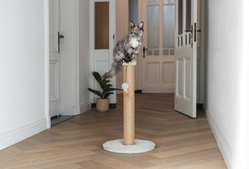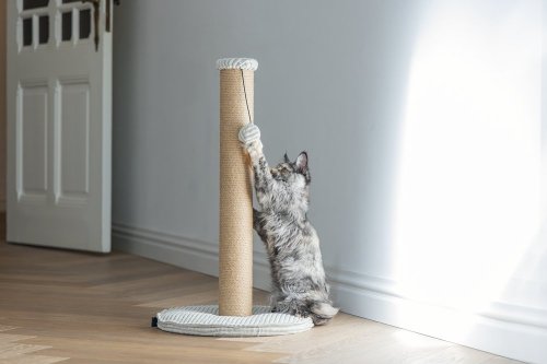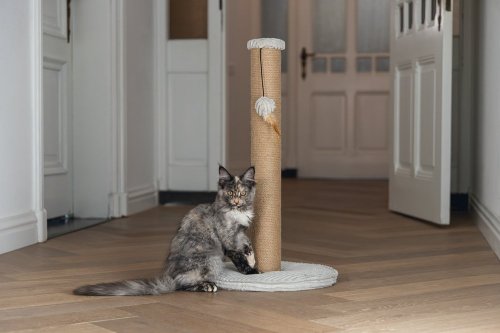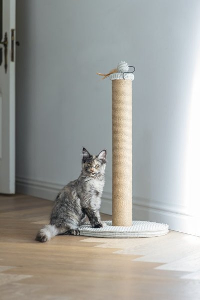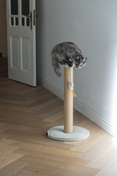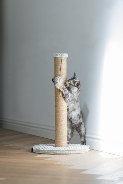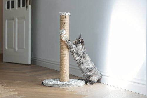 Toto škrabadlo bude nielen užitočné pre Vašu mačku a starostlivosť o jej pazúriky, ale bude aj vyzerať skvele vo Vašej domácnosti. Základňa je potiahnutá luxusnou rebrovanou tkaninou, v ktorej sú vyvedené aj ďalšie detaily. Škrabací stĺpik je omotaný jutovým lanom. Tu Váš maznáčik môže zvisle škrabať do sýtosti a Váš nábytok tak už nebude slúžiť ako škrabadlo. Vďaka zavesenej hračke vo forme loptičky s pierkom je škrabadlo aj neodolateľne zábavné. Skrátka - s týmto škrabadlom urobíte radosť sebe aj svojej mačke.