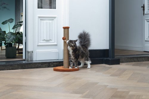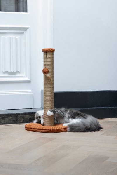 Toto škrabadlo bude nielen užitočné pre Vašu mačku a starostlivosť o jej pazúriky, ale bude aj vyzerať skvele vo Vašej domácnosti. Základňa je potiahnutá luxusnou rebrovanou tkaninou, v ktorej sú vyvedené aj ďalšie detaily. Škrabací stĺpik je omotaný jutovým lanom. Tu Váš maznáčik môže zvisle škrabať do sýtosti a Váš nábytok tak už nebude slúžiť ako škrabadlo. Vďaka zavesenej hračke vo forme loptičky s pierkom je škrabadlo aj neodolateľne zábavné. Skrátka - s týmto škrabadlom urobíte radosť sebe aj svojej mačke.