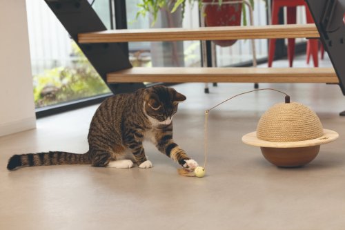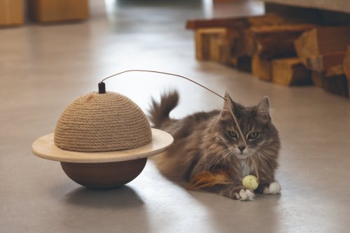 Wiggly od Designed by Lotte je skutočným dizajnovým kúskom pre Váš domov, a pre Vašu mačku predstavuje množstvo zábavy a radosti. Je vyrobené z kaučukového dreva, ktoré má krásnu, svetlo krémovú farbu az jutového lana. Čerešničkou na torte je efektné škádlítko s pierkami. Ale to nie je všetko. Akonáhle sa mačka začne hrať, automaticky sa pridá ďalší herný prvok - škrabadlo sa bude kývať zo strany na stranu.