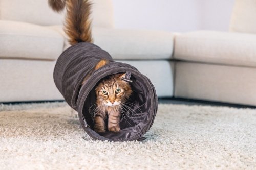 Skladací tunel z rebrovanej tkaniny pre mačky.