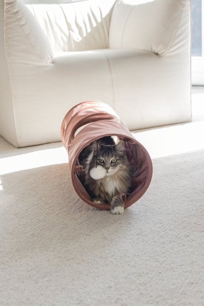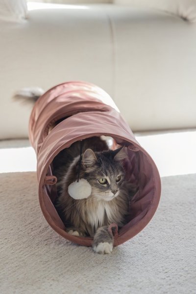 Elegantný tunel Cylla zabaví Vášho domáceho maznáčika na celé hodiny. Vaša mačka sa bude rada v tuneli schovávať alebo ním prebiehať. Tunel má otvor nielen vpredu a vzadu, ale Vaša mačka môže tiež uniknúť z tunela otvorom uprostred. Pridaná hračka vo forme zavesenej chlpatej loptičky sa postará o extra zábavu. Zabudované kovové kruhy udržujú tunel otvorený a napnutý. Mačací tunel Cylla má zvonku krásnu zamatovú látku, vďaka ktorej sa krásne hodí do každého interiéru a môžete ho zladiť s rôznymi trendmi bývania. Už si Váš chlpatý maznáčik dohral? Potom môžete tunel ľahko zložiť naplocho a uložiť pre úsporu miesta.