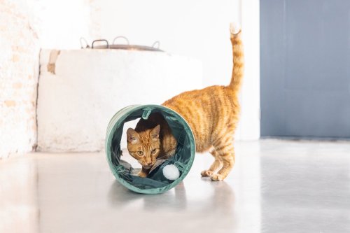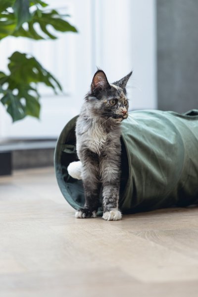 Elegantný tunel Cylla zabaví Vášho domáceho maznáčika na celé hodiny. Vaša mačka sa bude rada v tuneli schovávať alebo ním prebiehať. Tunel má otvor nielen vpredu a vzadu, ale Váš maznáčik môže tiež uniknúť z tunela otvorom uprostred. Pridaná hračka vo forme zavesenej chlpatej loptičky sa postará o extra zábavu. Zabudované kovové kruhy udržujú tunel otvorený a napnutý. Mačací tunel Cylla má zvonku krásnu zamatovú látku, vďaka ktorej sa hodí do každého interiéru a môžete ho zladiť s rôznymi trendmi bývania. Už si Váš chlpatý maznáčik dohral? Potom môžete tunel ľahko zložiť naplocho a uložiť pre úsporu miesta.