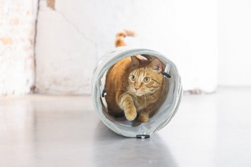 Elegantný tunel zaistí hodiny zábavy. Vaša mačka sa bude rada v tuneli schovávať alebo ním prebiehať. Tunel má navyše jeden otvor uprostred. Zabudované kovové kruhy udržujú tunel otvorený a napnutý. Je opatrený krásnou, trendy rebrovanou látkou. Vďaka tomu sa perfektne hodí k najnovším trendom bývania a stane sa krásnym doplnkom Vášho interiéru. Už si Váš chlpatý maznáčik dohral? Potom môžete tunel ľahko zložiť naplocho a uložiť pre úsporu miesta.