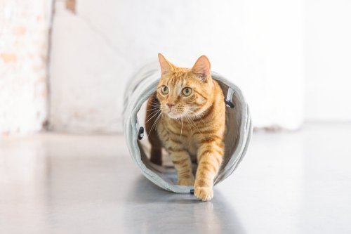 Skladací tunel z rebrovanej tkaniny pre mačky.