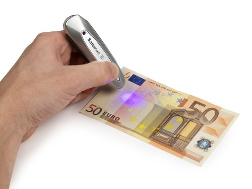 Kompaktný detektor Safescan na overenie pravosti bankoviek troma rôznymi spôsobmi: UV, magnetické vlastnosti a bezpečnostný prúžok.