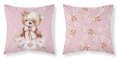 DETEXPOL Obliečka na vankúšik Medvedík mašle 40/40 Obliečka na vankúšik je vyrobená zo 100% Bavlny, obliečka z každej strany iný obrázok obrázok, zapínanie na zips Materiál: 100% Bavlna Rozmer: 1x 40/40 cm