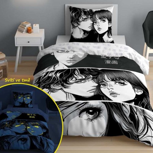 DETEXPOL Obliečky Anime Manga svietiace 140/200, 70/80 Bavlnené obliečky na veľkú posteľ, zapínanie na zips, obliečky majú z každej strany iný motív, viď. foto, obliečky svietia v tme po nasvietení na dennom …
