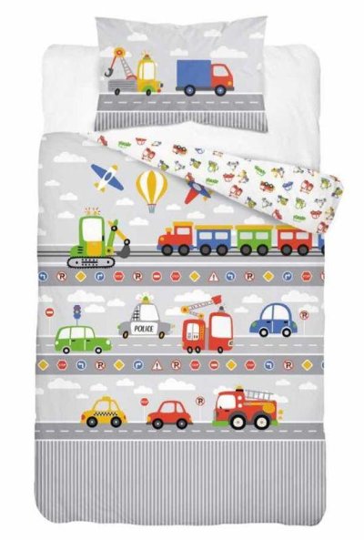 DETEXPOL Obliečky do postieľky Autíčka grey 100/135, 40/60 Materiál: 100% Bavlna Rozmer: 1x 100/135, 1x 40/60 cm Detské bavlnené obliečky do postieľky, motív periny je z každej strany iný, zapínať