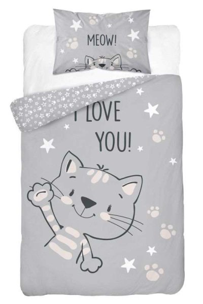 DETEXPOL Obliečky do postieľky Mačka I love you 100/135, 40/60 Detské bavlnené obliečky do postieľky, motív periny je z každej strany iný, zapínanie na zips, pranie na 40 ° C Materiál: 100% Bavlna Rozmer: 1x 0/10
