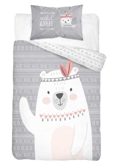 DETEXPOL Obliečky do postieľky Medvedík Indián grey 100/135, 40/60 Detské bavlnené obliečky do postieľky, motív periny je z každej strany iný, zapínanie na zips, pranie na 40 ° C Materiál: 100% Bavlna Rozmer: 1x 10 40/60 cm