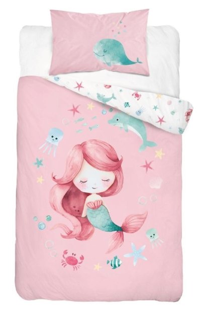 DETEXPOL Obliečky do postieľky Morská Víla ružová 100/135, 40/60 Detské bavlnené obliečky do postieľky, motív periny je z každej strany iný, zapínanie na zips, pranie na 40 ° C Materiál: 100% Bavlna Rozmer: 1x 100