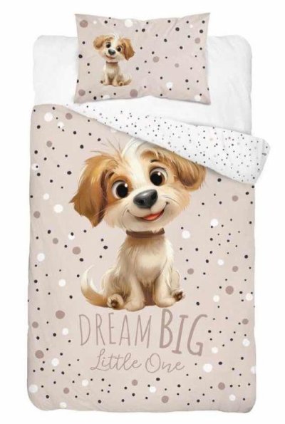 DETEXPOL Obliečky do postieľky Veselý Psík B 100/135, 40/60 Materiál: 100% Bavlna Rozmer: 1x 100/135, 1x 40/60 cm Detské bavlnené obliečky do postieľky, motív periny je z každej strany iný,