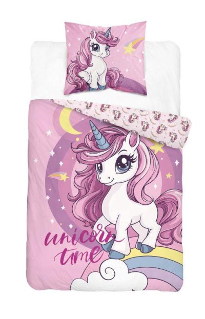 DETEXPOL Obliečky Jednorožec hviezdičky 140/200, 70/80 Materiál: 100% Bavlna Rozmer: 1x 140/200, 1x 70/80 cm Bavlnené obliečky na veľkú posteľ, zapínanie na zips, obliečky majú z každej strany iný motív, viď. foto, pranie na 40°C