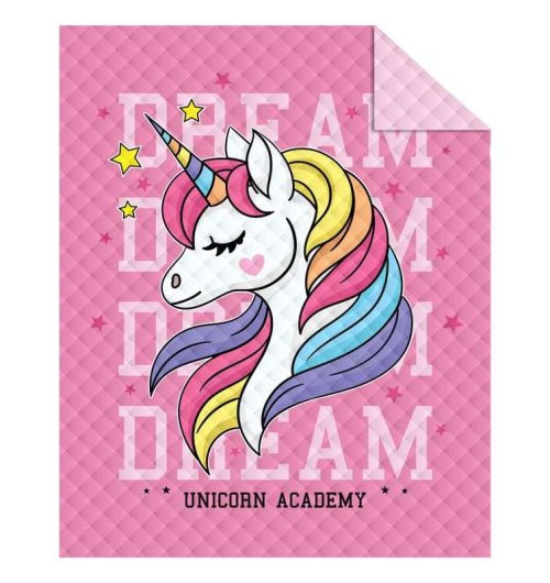 DETEXPOL Prikrývka na posteľ Jednorožec dream 170/210 Prikrývka na posteľ je vyrobená zo 100% Polyesteru. Praktický prehoz na posteľ je ľahký, dobre sa s ním manipuluje. Prikrývka je možné použiť aj ako ľahkú deku na návštevu, alebo v horúcich letných dňoch ako prikrývku. Možno prať v práčke na 30 °C. Materiál: 100% Polyester Rozmer: 1x 170/210 cm