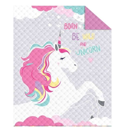 DETEXPOL Prikrývka na posteľ Jednorožec grey 170/210 Materiál: 100% Polyester Rozmer: 1x 170/210 cm Prikrývka na posteľ je vyrobená zo 100% Polyesteru. Praktický prehoz na posteľ je ľahký, dobre sa s ním manipuluje. Prikrývka je možné použiť aj ako ľahkú deku na návštevu, alebo v horúcich letných dňoch ako prikrývku. Možno prať v práčke na 30 °C.