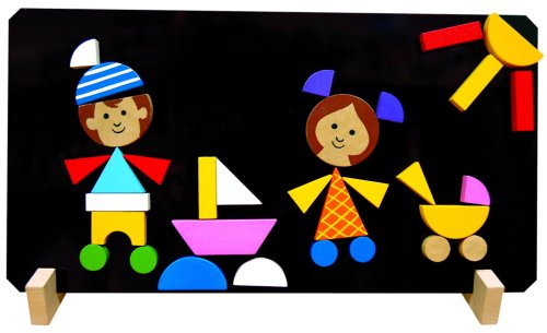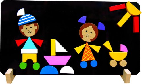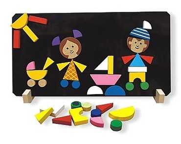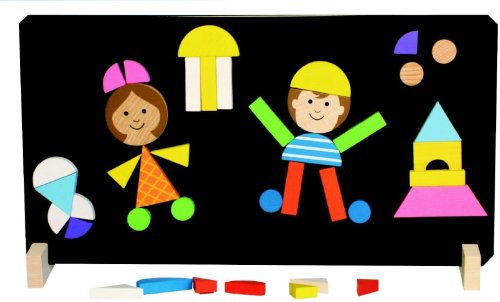 Obsah balenia: Magnetická tabuľka 310x165 mm, 2x drevený stojan a 37 drevených dielikov.