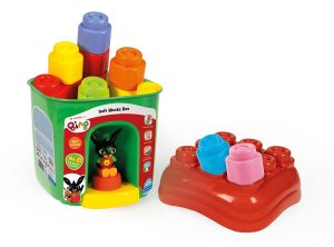 Zábavný Bing! Vedierko obsahujúce množstvo mäkkých blokov Clemmy navrhnutých tak, aby sa malé deti mohli hrať v úplnom bezpečí.