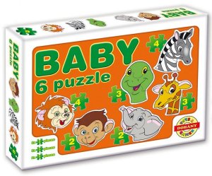 Obrysové progresívne puzzle pre malé deti so šiestimi motívmi hlavičiek zvierat zo safari.
