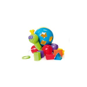 Vkladačka slimák na kolieskach 2v1 obsahuje šesť prvkov pre výučbu tvarov a farieb (guľa je odnímateľná), odporúčaný vek od 12-tich mesiacov, priemer gule cca 150mm, 6 tvarov.