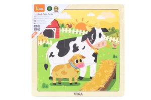 Drevené puzzle 9 dielikov s obrázkom kravičiek.