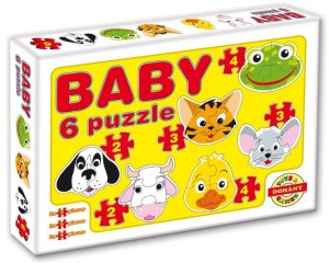 Obrysové progresívne puzzle pre malé deti so šiestimi motívmi hlavičiek zvierat.