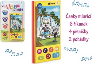 Dotykový mobil, ktorý rozpráva 2 rozprávky, spieva 4 pesničky a naučí deti 6 riekaniek.