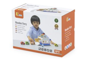Drevená vkladačka loď o rozmere cca 25 x 19 x 12 cm na kolieskach, ide s ňou jazdiť a zároveň je vyklápacia z oboch strán, takže môžu autá jazdiť na loď a splavovať. Balenie obsahuje 4 drevené autá voľný chod …